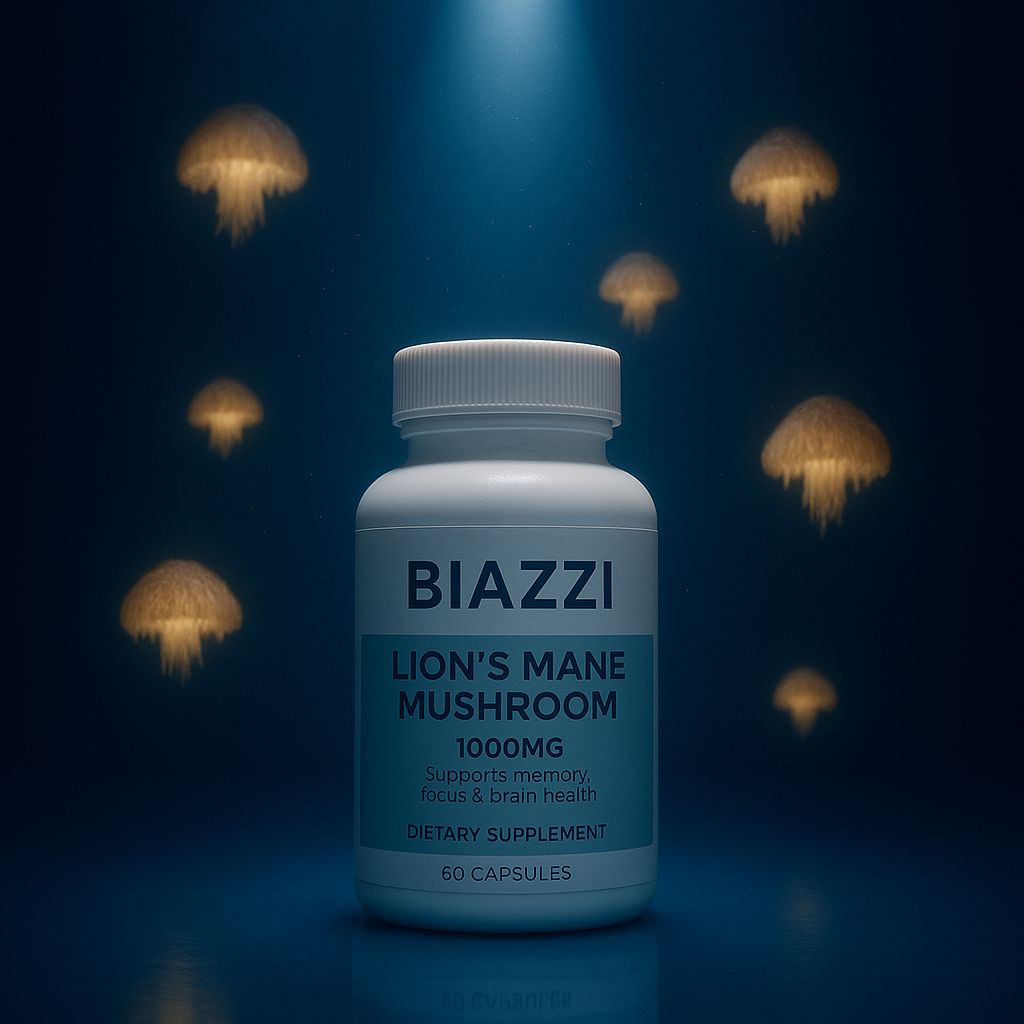 - 1,000mg dual-extracted organic Lion’s Mane (fruiting body + mycelium)