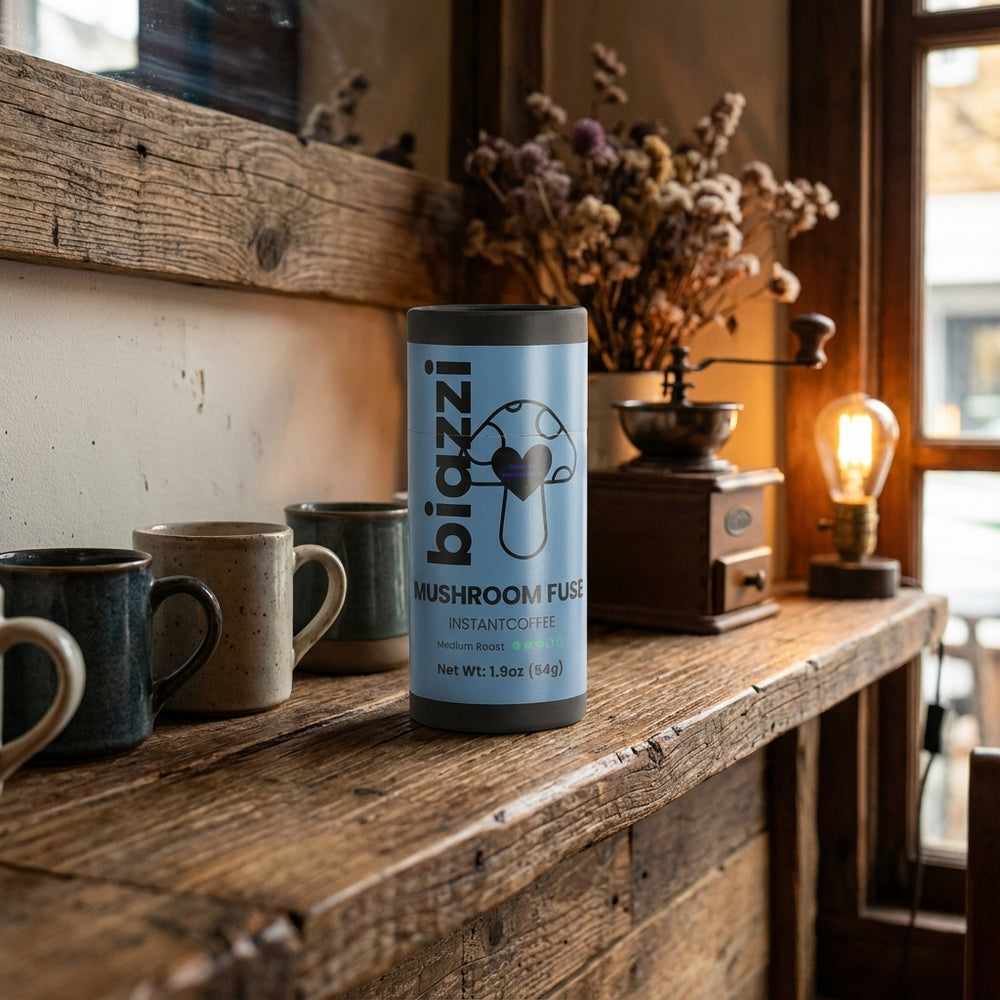 Experience the perfect blend of rich coffee and functional wellness with our medium roast instant coffee, infused with Lion’s Mane and Chaga mushrooms for a smooth and invigorating sip.